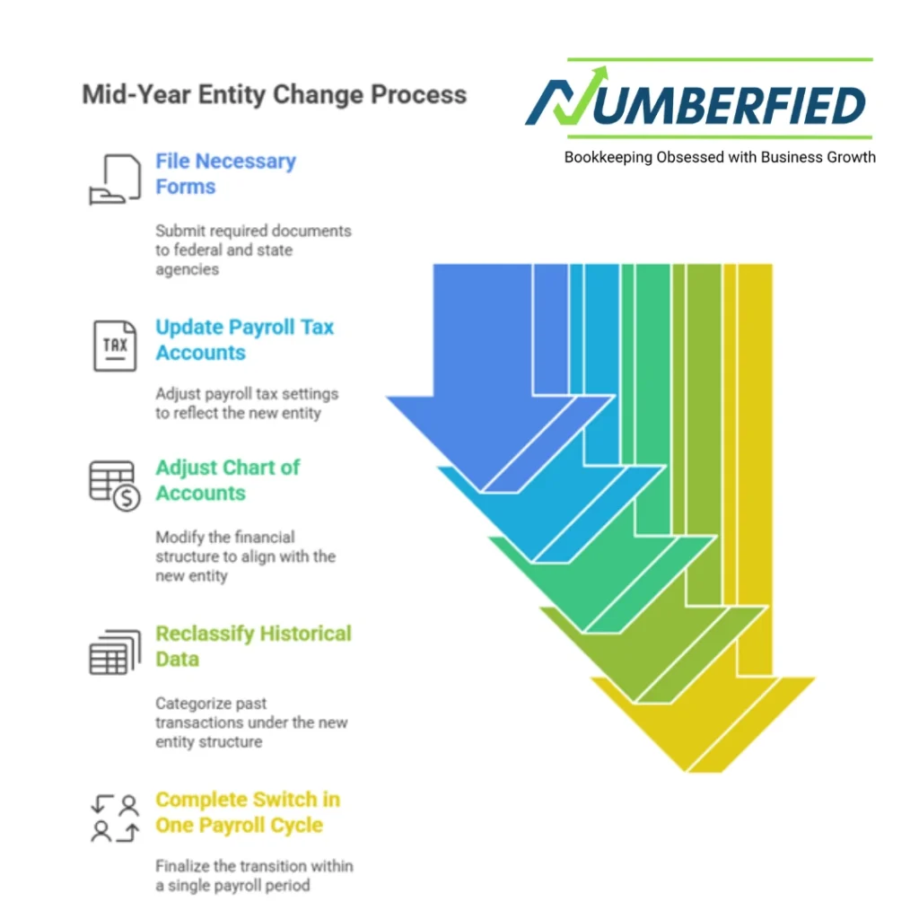 We file the necessary forms with federal and state agencies, update payroll tax accounts, and adjust the chart of accounts. Historical data reclassifies under the new structure. The switch completes in one payroll cycle with no disruption to employees or vendors.